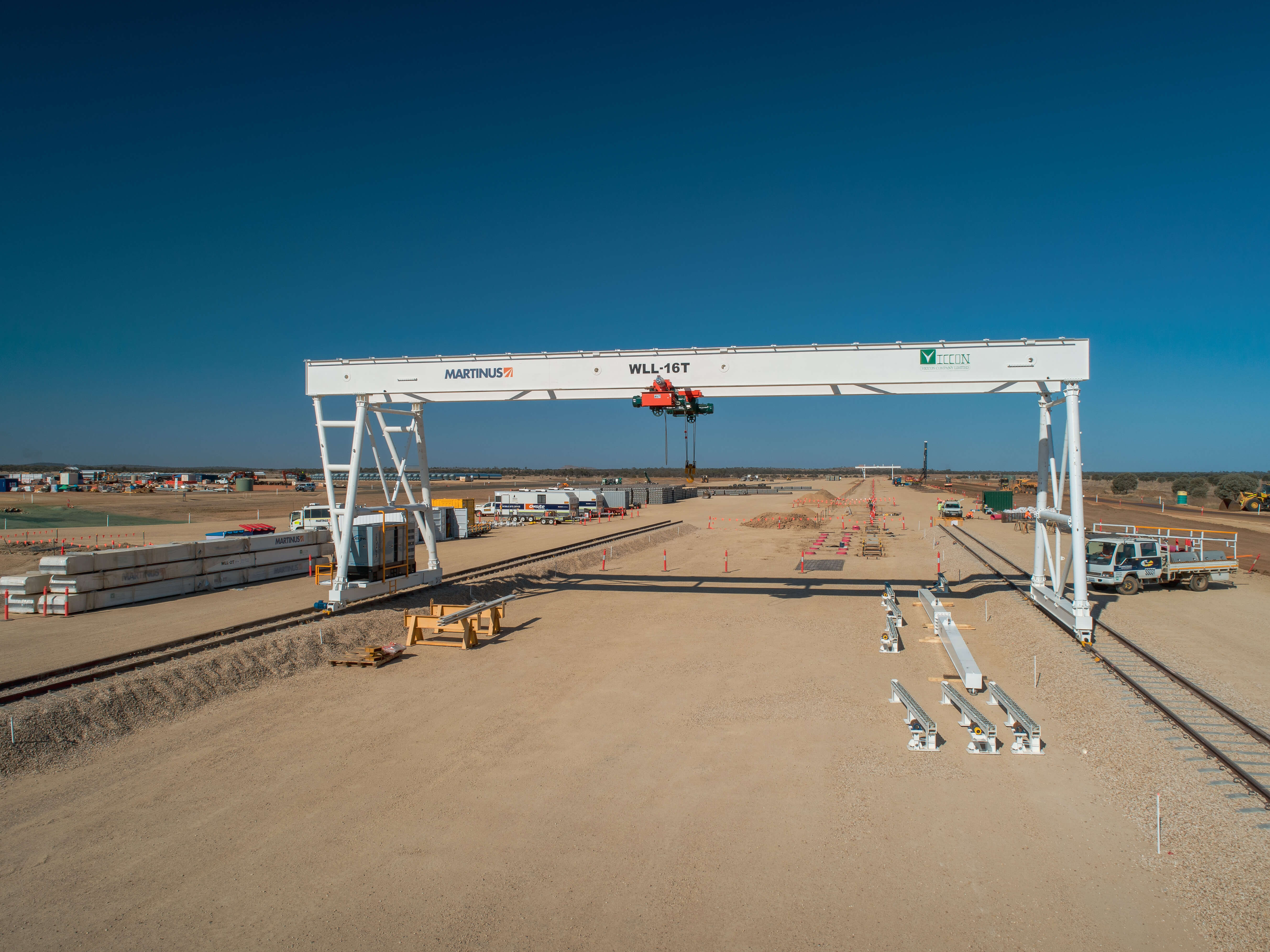 - Continuous motion track construction and rehabilitation machine accompanied by 2 gantry cranes and 26 sleeper wagons